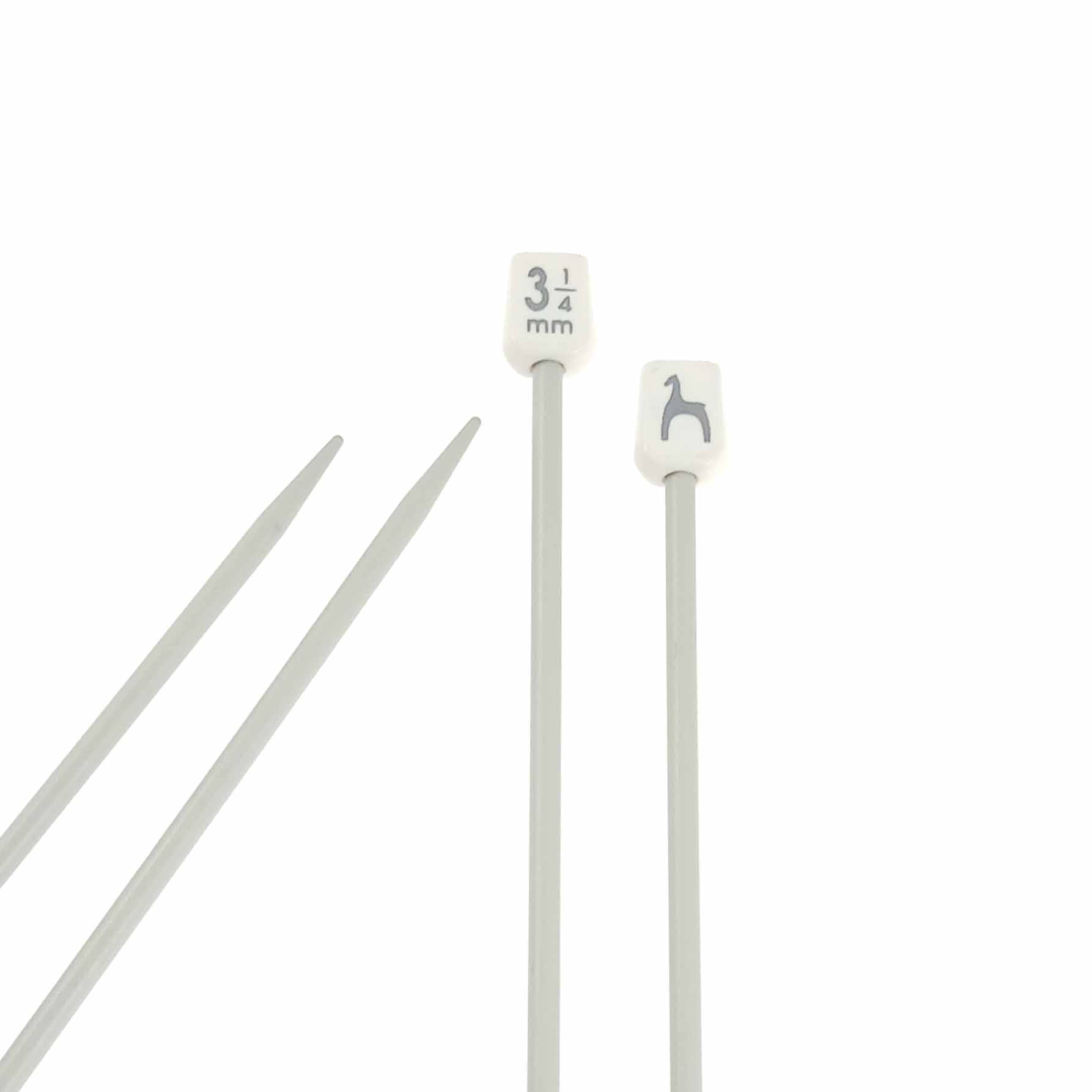 Druty PONY - zestaw dwóch prostych aluminiowych drutów powlekanych teflonem. Druty wykończone plastikową końcówką z rozmiarówką.
