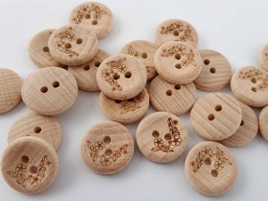 Guzik drewniany - surowy nielakierowany, płaski, na dwie dziurki.