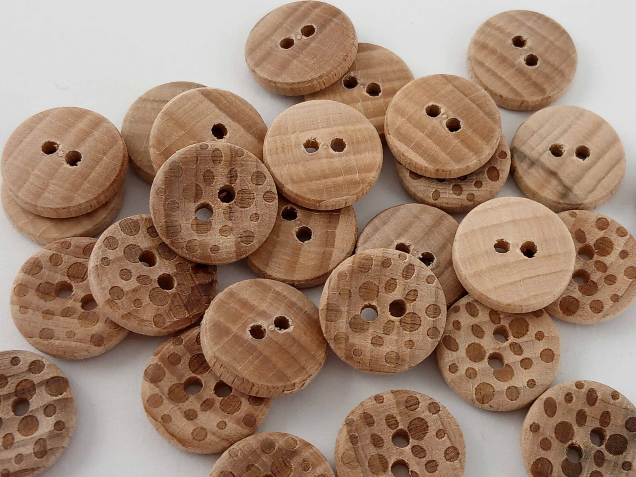 Guzik drewniany - surowy nielakierowany, płaski, na dwie dziurki.