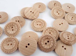 Guzik drewniany - surowy nielakierowany, płaski, na dwie dziurki.