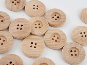 Guzik drewniany - surowy nielakierowany, płaski, na cztery dziurki.