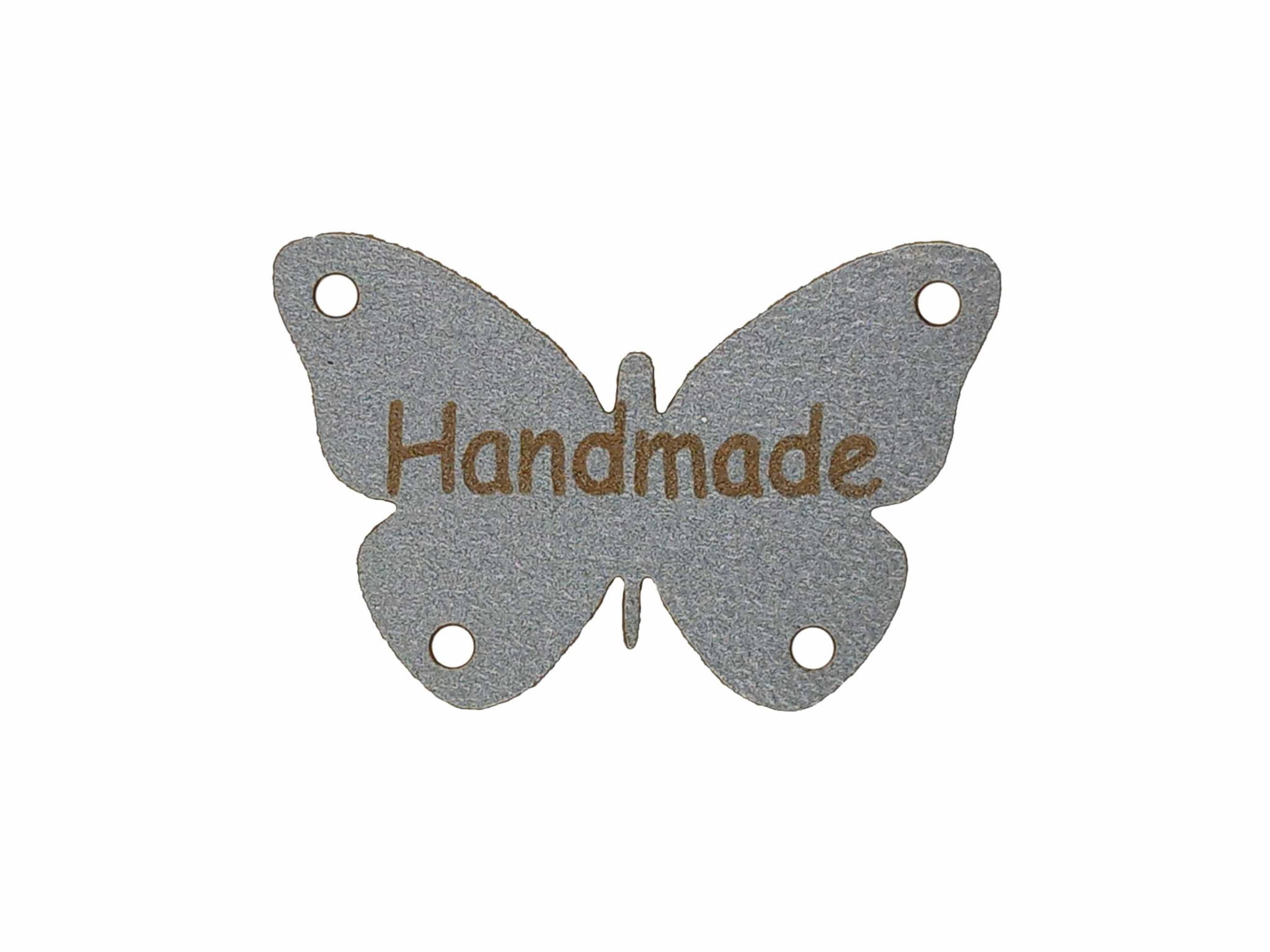 Naszywka z eko skory "Handmade" w kształcie motyla.