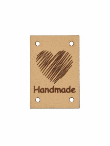 Naszywka z eko skóry "Handmade" z sercem.