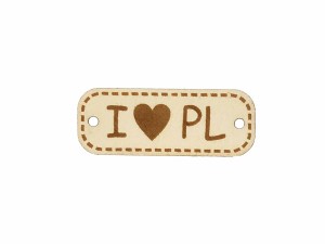 Naszywka z eko skory I "serce" PL - I Love Poland (kocham Polskę).