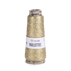 Kordonek YarnArt Paillettes - metalizowana nić z cekinami, idealna do łączenia z innymi włóczkami bądź kordonkami. Nada wyrobom wyjątkowy charakter z błyskiem. Można ją wplatać w swetry, czapki, szaliki, chusty, a także w serwetki i bieżniki.