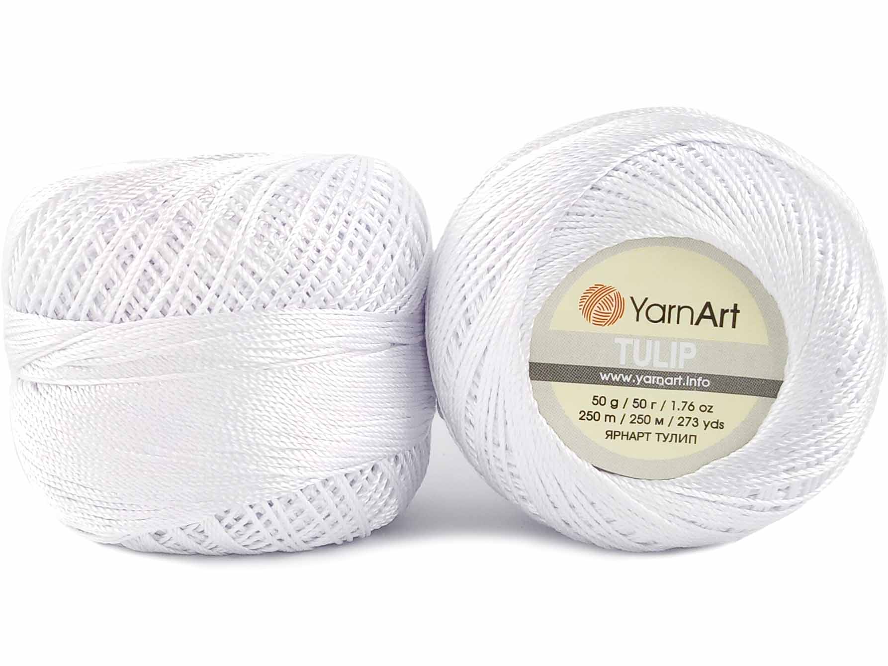 Kordonek YarnArt Tulip - atłasowa, błyszcząca, delikatna i miękka nić z mikrofibry idealna do tworzenia różnorodnych domowych produktów dekoracyjnych, takich jak obrusy, zasłony i poduszki. Może być również stosowana na szydełkowe pokrowce, pledy, torby z siatki i lekkie koronkowe swetry. Przędza ta idealnie nadaje się również do haftu, tkania i tworzenia biżuterii.