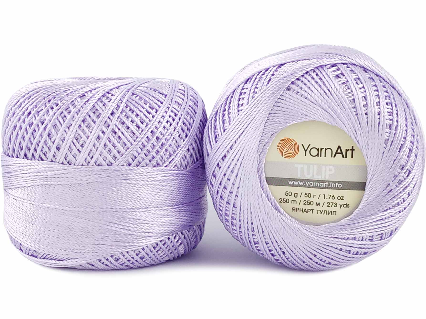 Kordonek YarnArt Tulip - atłasowa, błyszcząca, delikatna i miękka nić z mikrofibry idealna do tworzenia różnorodnych domowych produktów dekoracyjnych, takich jak obrusy, zasłony i poduszki. Może być również stosowana na szydełkowe pokrowce, pledy, torby z siatki i lekkie koronkowe swetry. Przędza ta idealnie nadaje się również do haftu, tkania i tworzenia biżuterii.