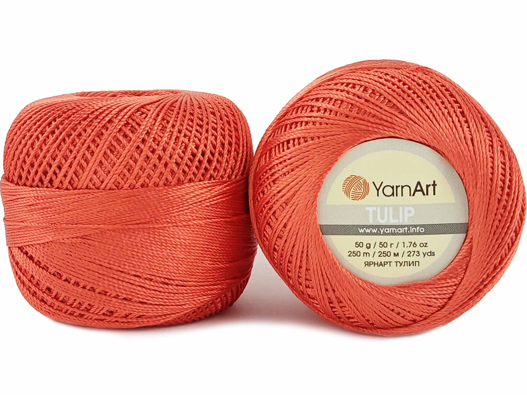 Kordonek YarnArt Tulip - atłasowa, błyszcząca, delikatna i miękka nić z mikrofibry idealna do tworzenia różnorodnych domowych produktów dekoracyjnych, takich jak obrusy, zasłony i poduszki. Może być również stosowana na szydełkowe pokrowce, pledy, torby z siatki i lekkie koronkowe swetry. Przędza ta idealnie nadaje się również do haftu, tkania i tworzenia biżuterii.
