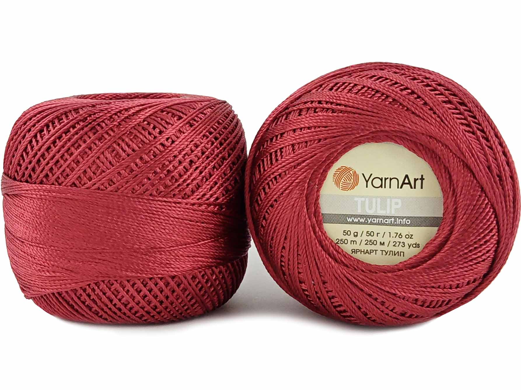 Kordonek YarnArt Tulip - atłasowa, błyszcząca, delikatna i miękka nić z mikrofibry idealna do tworzenia różnorodnych domowych produktów dekoracyjnych, takich jak obrusy, zasłony i poduszki. Może być również stosowana na szydełkowe pokrowce, pledy, torby z siatki i lekkie koronkowe swetry. Przędza ta idealnie nadaje się również do haftu, tkania i tworzenia biżuterii.