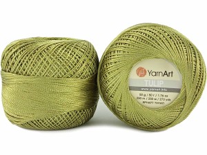Kordonek YarnArt Tulip - atłasowa, błyszcząca, delikatna i miękka nić z mikrofibry idealna do tworzenia różnorodnych domowych produktów dekoracyjnych, takich jak obrusy, zasłony i poduszki. Może być również stosowana na szydełkowe pokrowce, pledy, torby z siatki i lekkie koronkowe swetry. Przędza ta idealnie nadaje się również do haftu, tkania i tworzenia biżuterii.