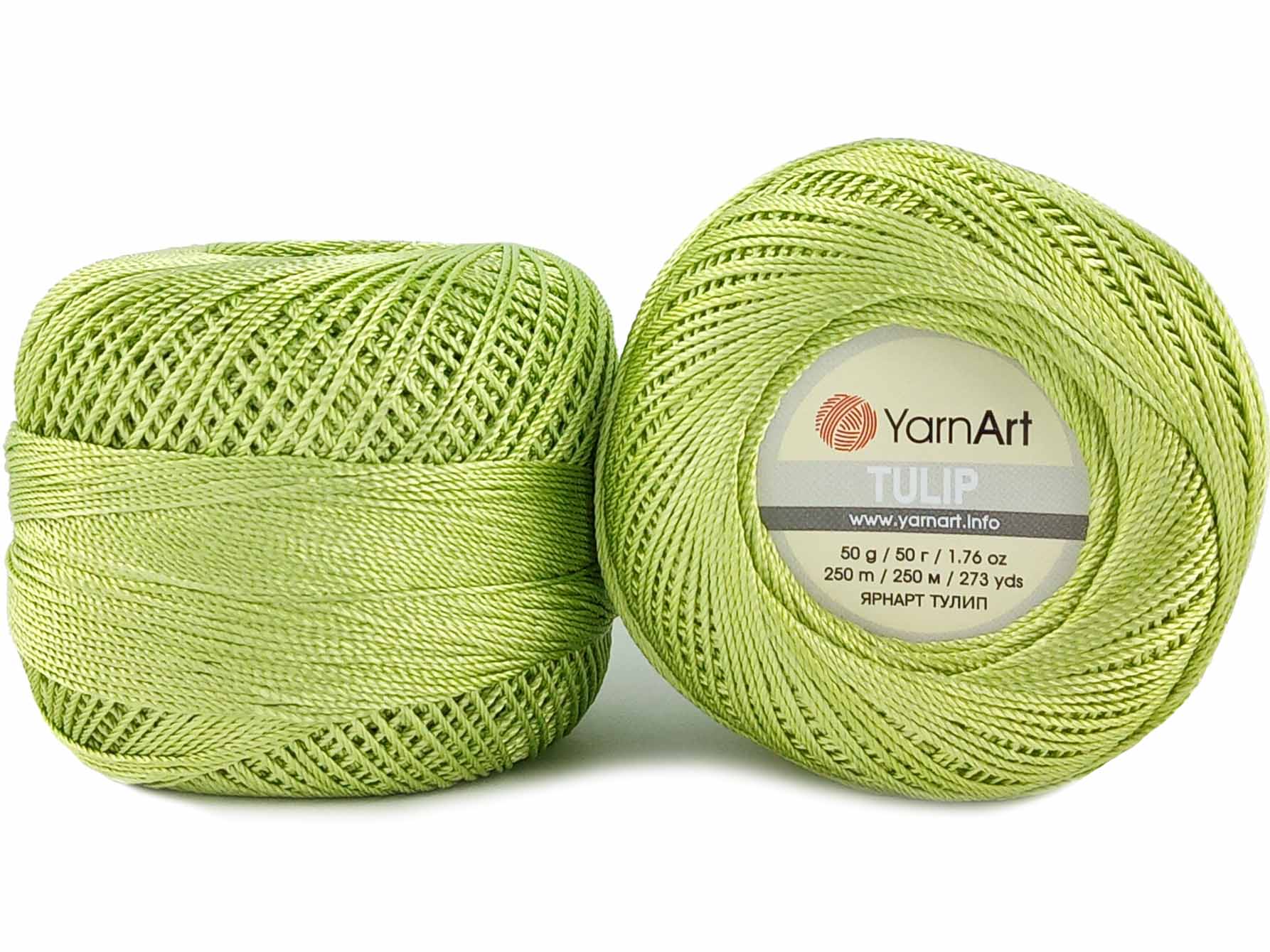 Kordonek YarnArt Tulip - atłasowa, błyszcząca, delikatna i miękka nić z mikrofibry idealna do tworzenia różnorodnych domowych produktów dekoracyjnych, takich jak obrusy, zasłony i poduszki. Może być również stosowana na szydełkowe pokrowce, pledy, torby z siatki i lekkie koronkowe swetry. Przędza ta idealnie nadaje się również do haftu, tkania i tworzenia biżuterii.