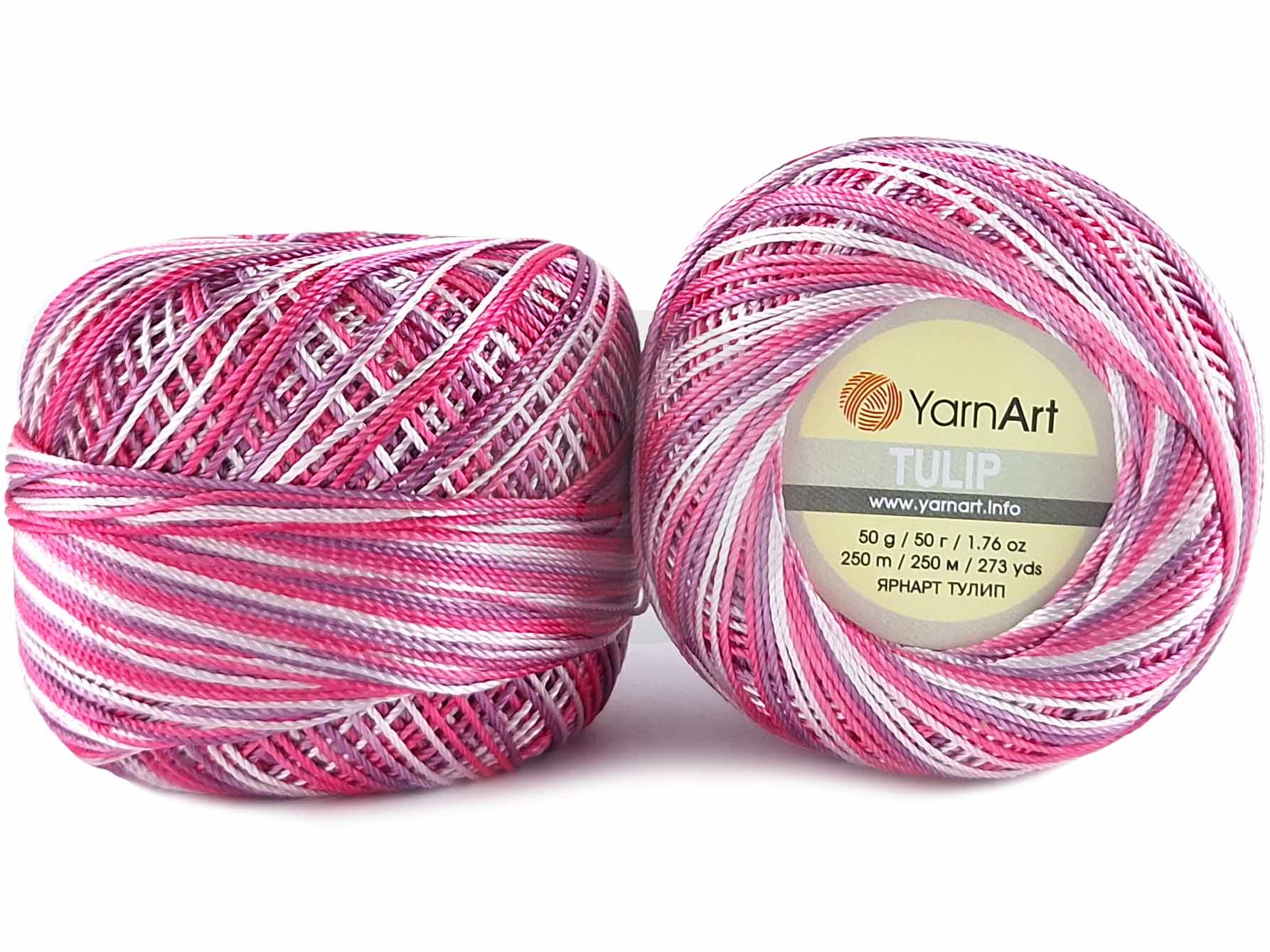 Kordonek YarnArt Tulip - atłasowa, błyszcząca, delikatna i miękka nić z mikrofibry idealna do tworzenia różnorodnych domowych produktów dekoracyjnych, takich jak obrusy, zasłony i poduszki. Może być również stosowana na szydełkowe pokrowce, pledy, torby z siatki i lekkie koronkowe swetry. Przędza ta idealnie nadaje się również do haftu, tkania i tworzenia biżuterii.