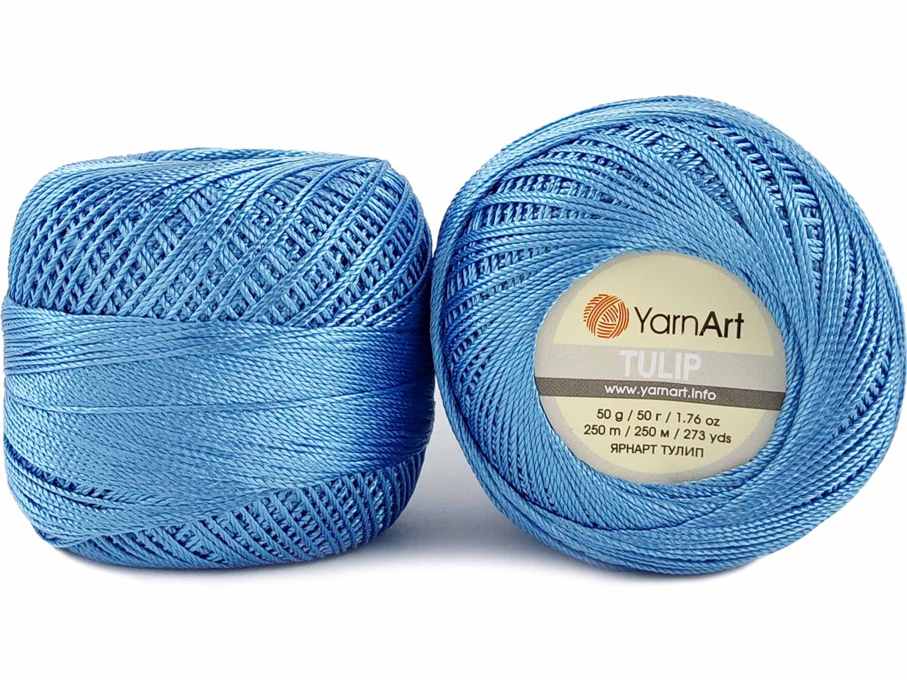 Kordonek YarnArt Tulip - atłasowa, błyszcząca, delikatna i miękka nić z mikrofibry idealna do tworzenia różnorodnych domowych produktów dekoracyjnych, takich jak obrusy, zasłony i poduszki. Może być również stosowana na szydełkowe pokrowce, pledy, torby z siatki i lekkie koronkowe swetry. Przędza ta idealnie nadaje się również do haftu, tkania i tworzenia biżuterii.