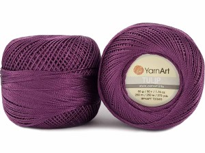 Kordonek YarnArt Tulip - atłasowa, błyszcząca, delikatna i miękka nić z mikrofibry idealna do tworzenia różnorodnych domowych produktów dekoracyjnych, takich jak obrusy, zasłony i poduszki. Może być również stosowana na szydełkowe pokrowce, pledy, torby z siatki i lekkie koronkowe swetry. Przędza ta idealnie nadaje się również do haftu, tkania i tworzenia biżuterii.