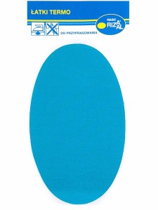 Łata do przyprasowania - zestaw dwóch owalnych łatek z termoklejem do przyprasowania na odzież. Przyprasowywać do odzieży z zawartością bawełny w składzie minimum 30%.
