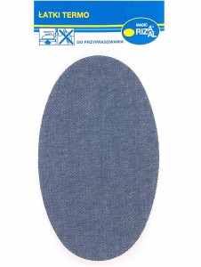 Łata do przyprasowania - zestaw dwóch owalnych łatek z termoklejem do przyprasowania na odzież. Przyprasowywać do odzieży z zawartością bawełny w składzie minimum 30%.