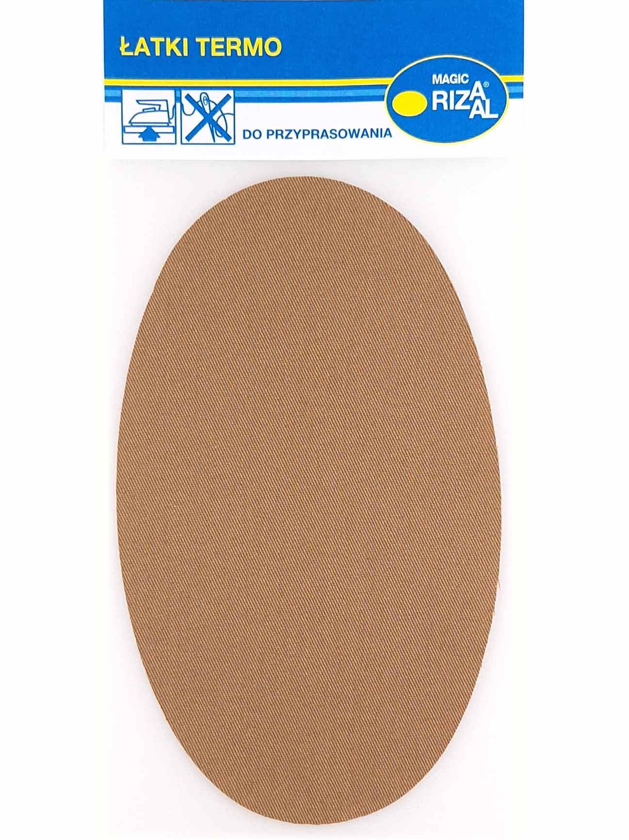 Łata do przyprasowania - zestaw dwóch owalnych łatek z termoklejem do przyprasowania na odzież. Przyprasowywać do odzieży z zawartością bawełny w składzie minimum 30%.