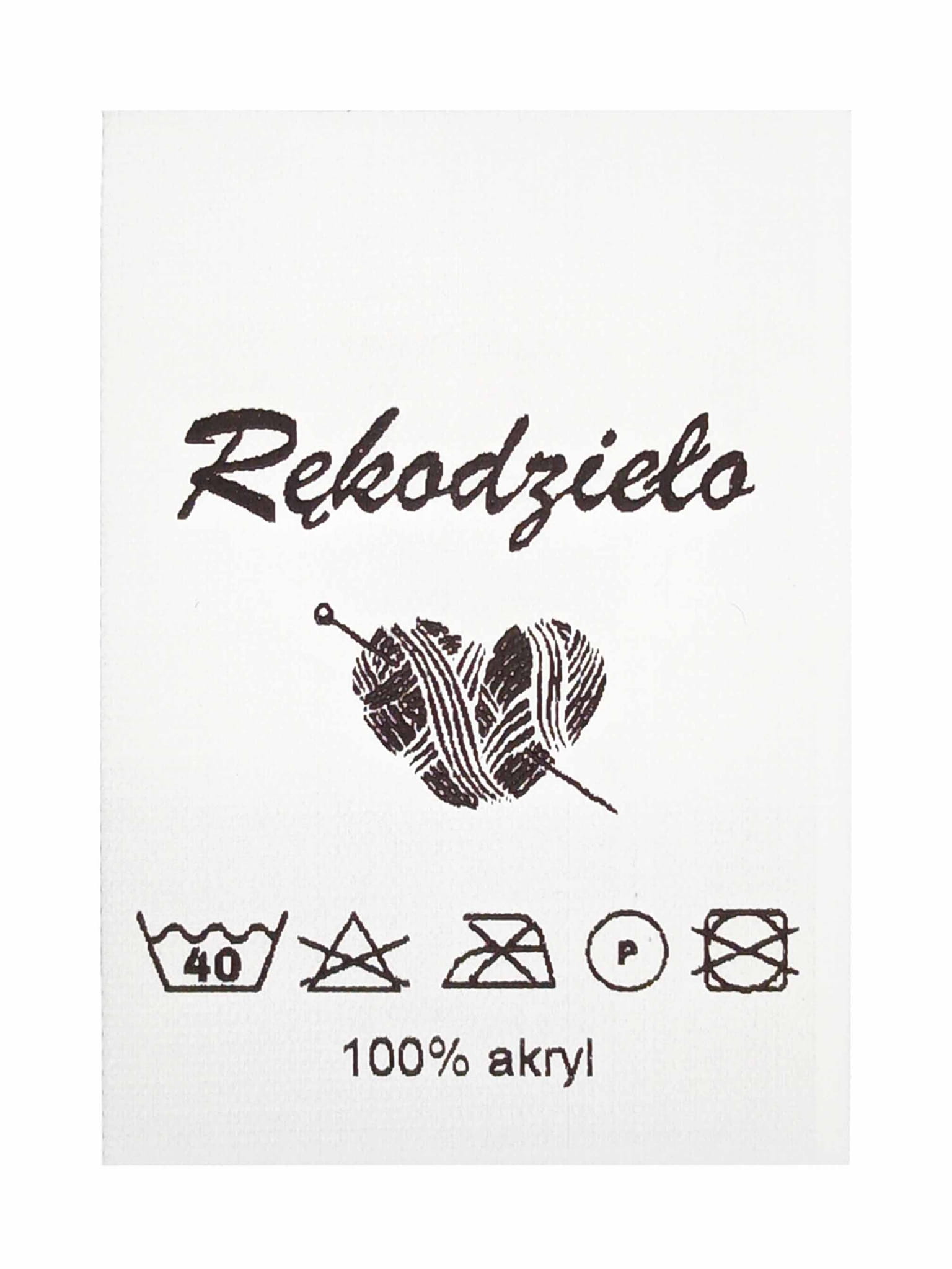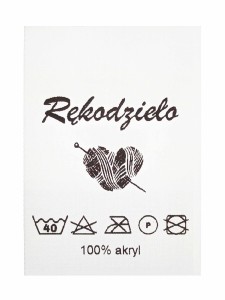 Metka odzieżowa "Rękodzieło" 100% akryl - metka do samodzielnego wszycia, zawiera skład i instrukcję prania.