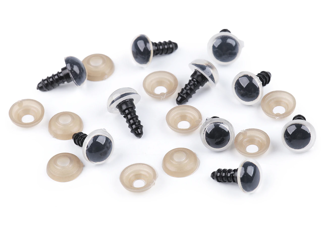 Bezpieczne oczy do zabawek - oczka posiadają plastikowe zatyczki, służące do montażu od wewnętrznej / lewej strony materiału.