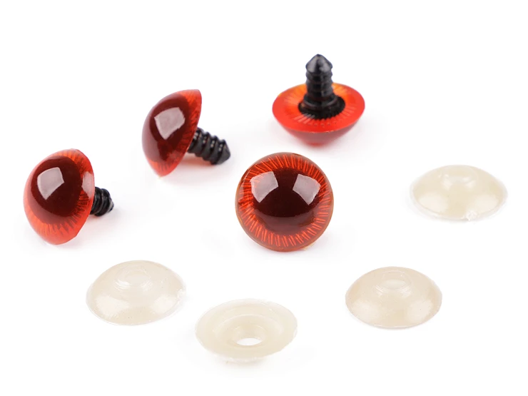 Bezpieczne oczy do zabawek - oczka posiadają plastikowe zatyczki, służące do montażu od wewnętrznej / lewej strony materiału.