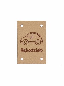 Naszywka z eko skóry "Rękodzieło" z samochodzikiem.
