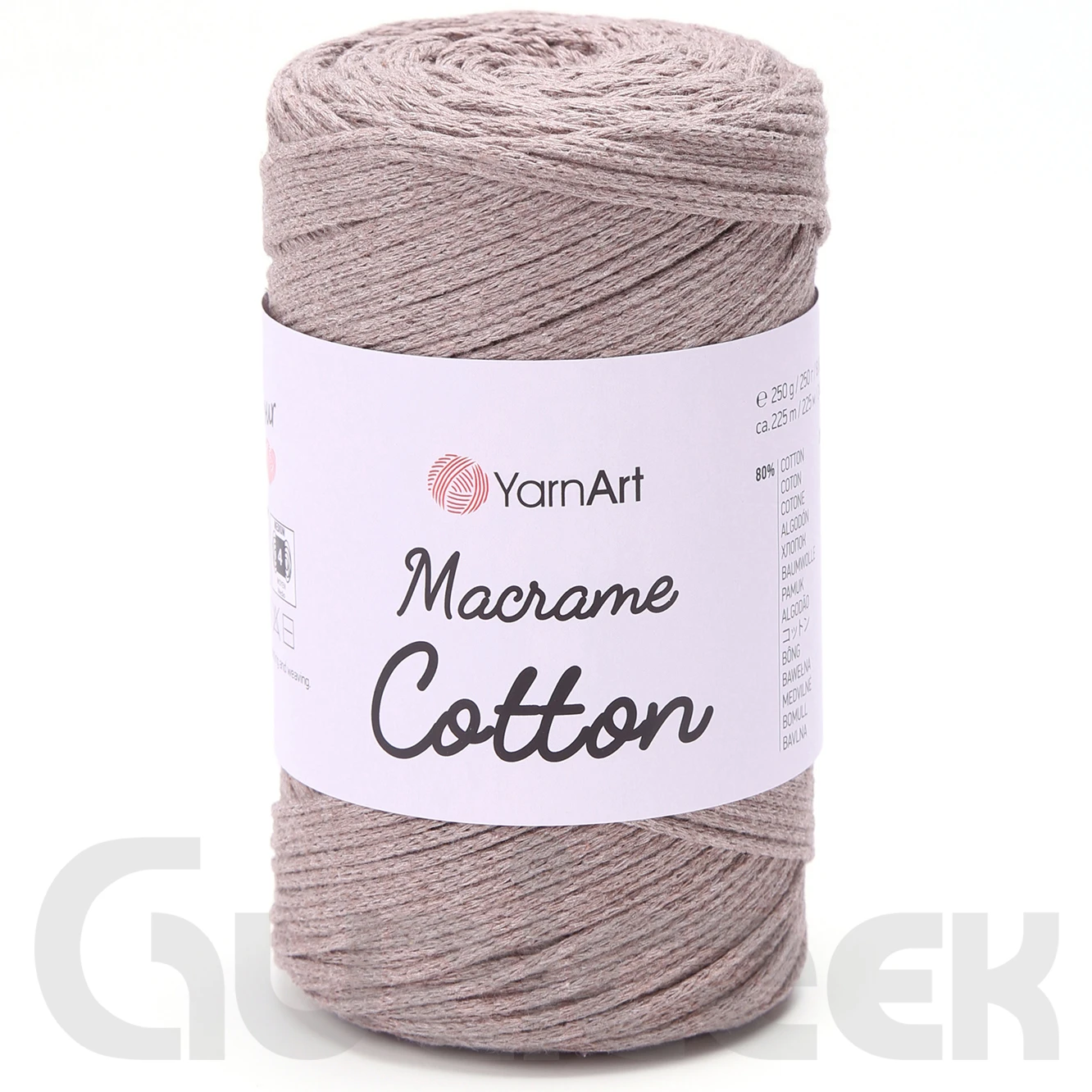 Sznurek bawełniany YarnArt macrame cotton - miękki i delikatny pleciony sznurek bez rdzenia, nie ślizga się przez co jest łatwy w wiązaniu w technice makramowej. Polecany przy wyrobach typu torebki, siatki, poduszki, pledy, makramy. Grubość sznurka ok. 1,5 - 2 mm.