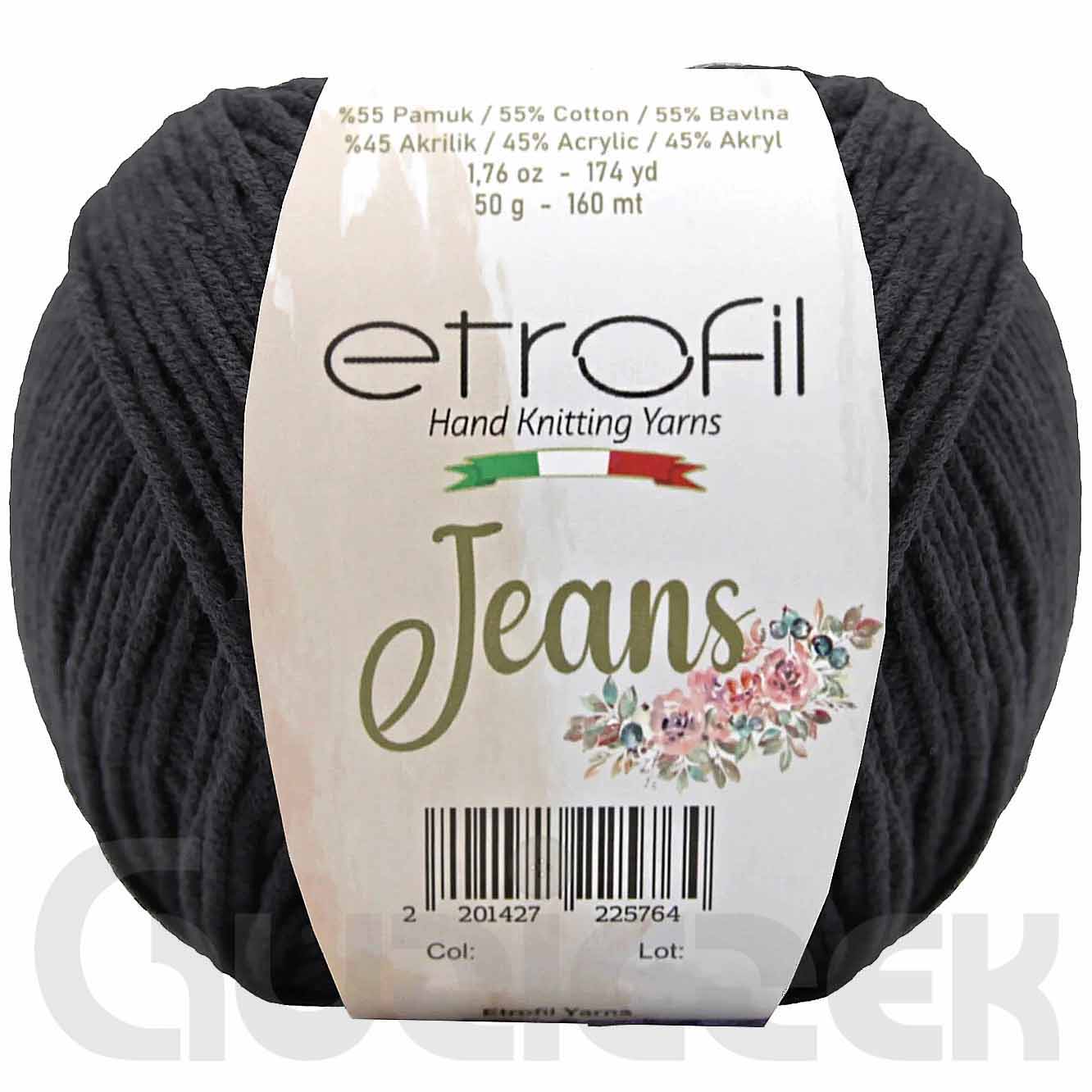 Włóczka Etrofil Jeans - to połączenie bawełny i akrylu, które nadaje dzianinie miękkość i elastyczność, dzięki zawartości bawełny włóczka zapewnia komfort oraz oddychającą strukturę, a dzięki zawartości akrylu ułatwia uzyskanie lżejszych, mocniejszych i ponadczasowych produktów. To kłębek o bardzo szerokim zastosowaniu, który sprawdzi się o każdej porze roku. Dzięki dużej gamie kolorystycznej możesz dziergać takie rzeczy jak letnie sukienki, pareo, bluzki, wiosenne kardigany i kamizelki. Nadaje się także do projektów takich jak ubranka dla dzieci, kocyki, zabawki, akcesoria, torby, haft i poduszki.