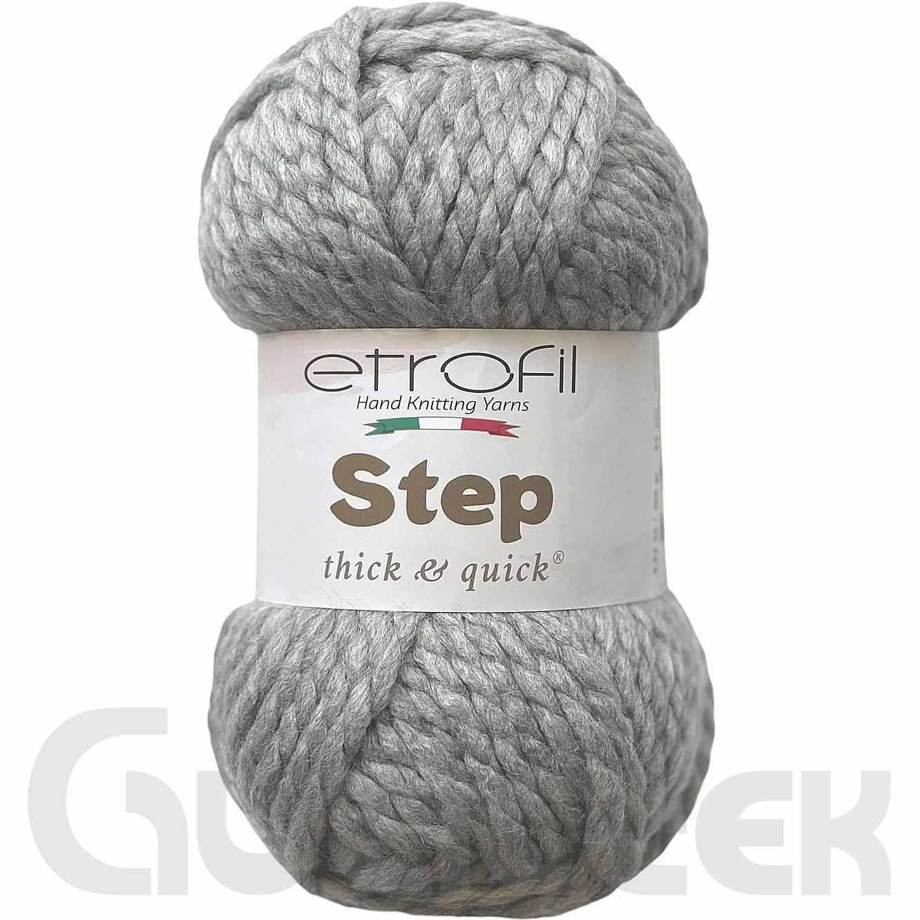 Włóczka Etrofil Step - jest to mieszanka wełny z akrylem, ciepła o dość grubej nitce. Świetnie nada się na różne projekty oversizowe takie jak swetry, kamizelki, czapki, szaliki, grube skarpetki czy koce, pledy i poduchy.