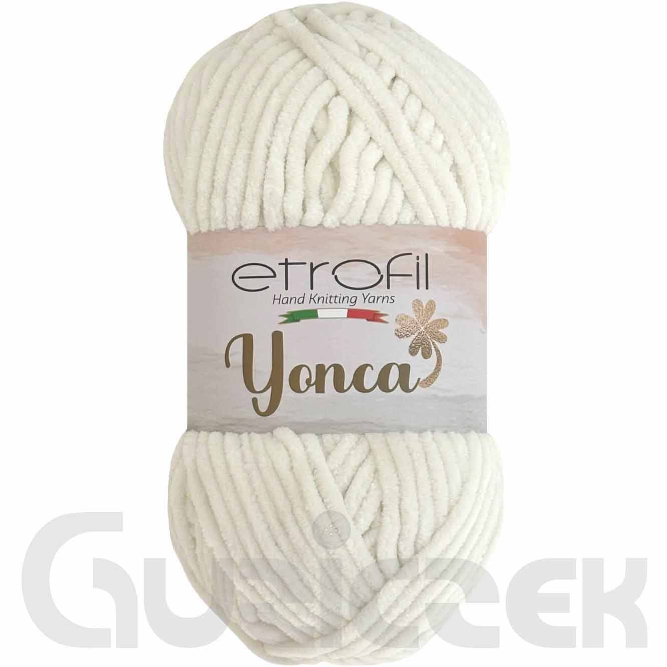 Włóczka Etrofil Yonca - wykonana jest w 100% z poliestru. Welurowa nić charakteryzuje się miękką, puszystą, zwartą strukturą, która nie pęka. Dzięki zawartości poliestru ma hipoalergiczną strukturę, jest oddychająca, szybko schnie i jest odporna na zagniecenia i kurczenie. Włóczka welurowa ma okrągły kształt, dzięki czemu charakteryzuje się wysoką gęstością włókien. Ta cecha zapewnia miękkość w dotyku i przyjemny wygląd każdej dzianiny.