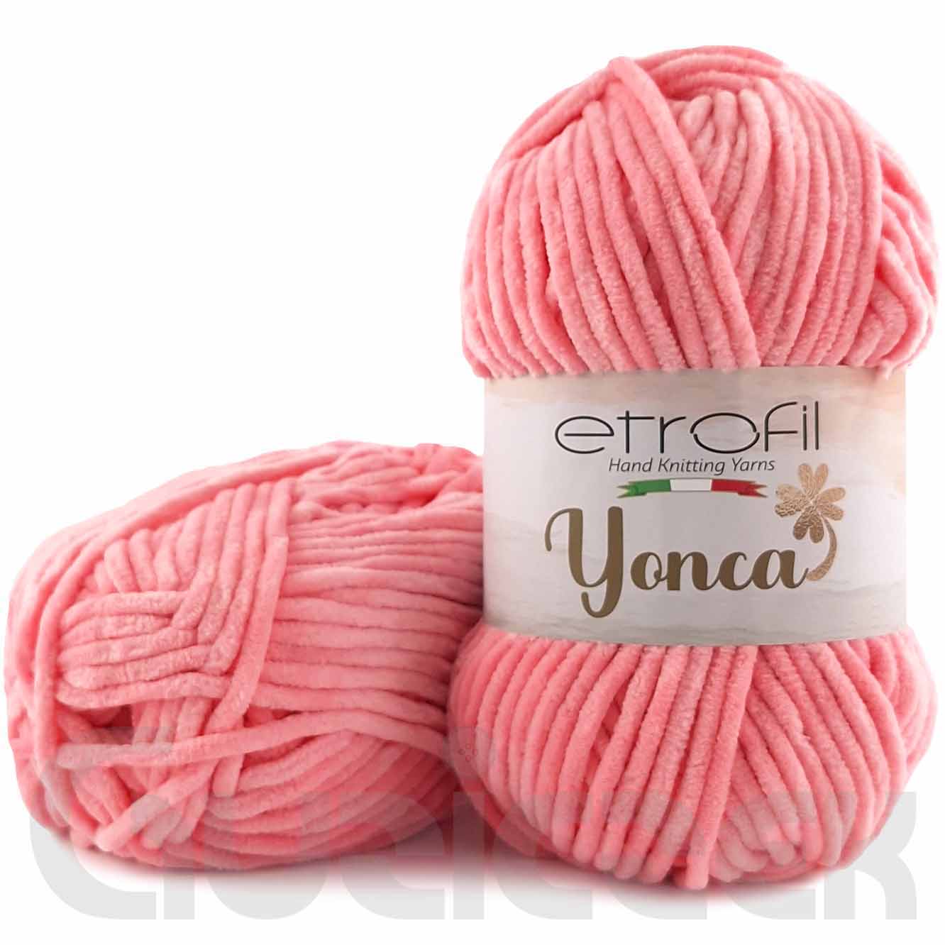 Włóczka Etrofil Yonca - wykonana jest w 100% z poliestru. Welurowa nić charakteryzuje się miękką, puszystą, zwartą strukturą, która nie pęka. Dzięki zawartości poliestru ma hipoalergiczną strukturę, jest oddychająca, szybko schnie i jest odporna na zagniecenia i kurczenie. Włóczka welurowa ma okrągły kształt, dzięki czemu charakteryzuje się wysoką gęstością włókien. Ta cecha zapewnia miękkość w dotyku i przyjemny wygląd każdej dzianiny.