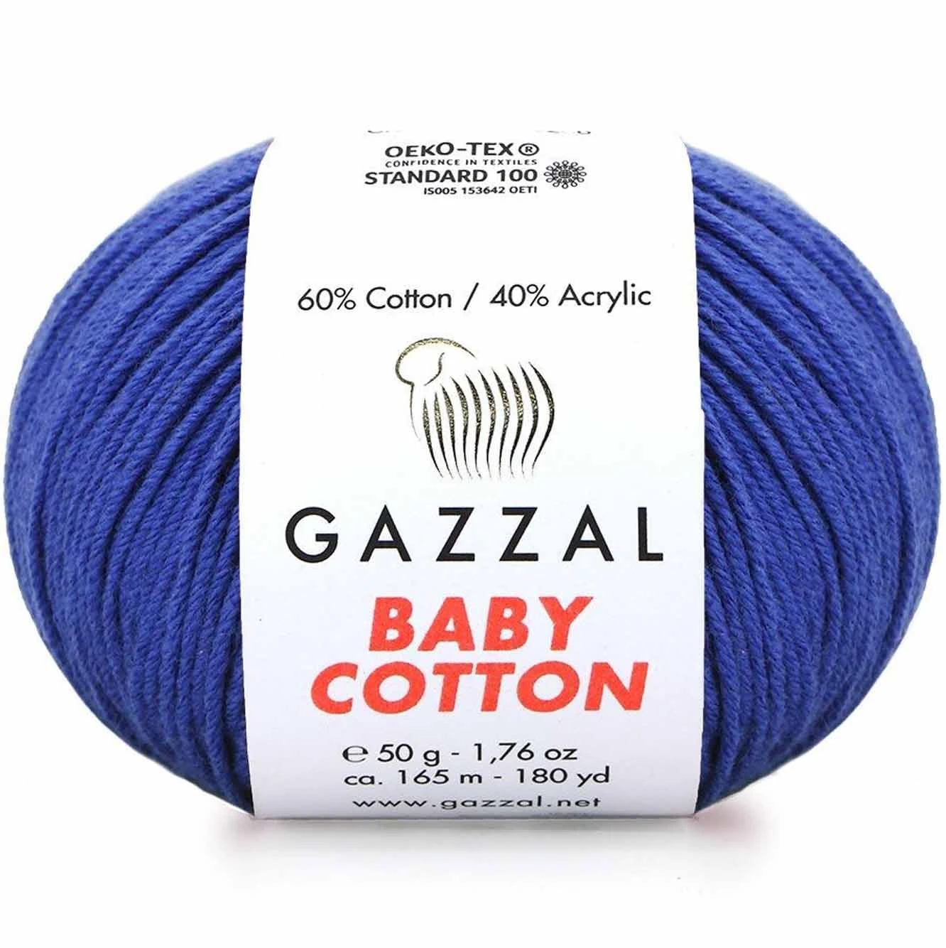 Włóczka Gazzal Baby Cotton - mieszanka bawełny z akrylem. Bardzo delikatna, miękka kompozycja idealna dla dzieci oraz osób wrażliwych. Średniej grubości włóczka sprawdzi się na różnego rodzaju wyroby dziewiarskie od swetrów, kamizelek, czapek, szalików po ciepłe kocyki dla dzieci oraz zabawki.