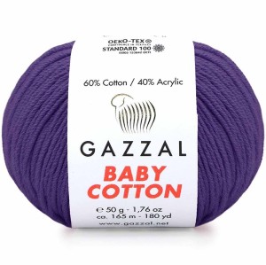 Włóczka Gazzal Baby Cotton - mieszanka bawełny z akrylem. Bardzo delikatna, miękka kompozycja idealna dla dzieci oraz osób wrażliwych. Średniej grubości włóczka sprawdzi się na różnego rodzaju wyroby dziewiarskie od swetrów, kamizelek, czapek, szalików po ciepłe kocyki dla dzieci oraz zabawki.