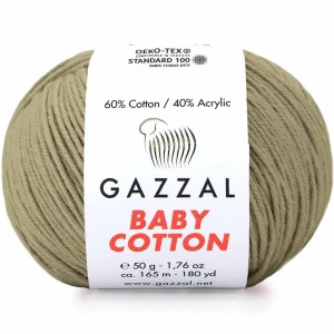 Włóczka Gazzal Baby Cotton - mieszanka bawełny z akrylem. Bardzo delikatna, miękka kompozycja idealna dla dzieci oraz osób wrażliwych. Średniej grubości włóczka sprawdzi się na różnego rodzaju wyroby dziewiarskie od swetrów, kamizelek, czapek, szalików po ciepłe kocyki dla dzieci oraz zabawki.