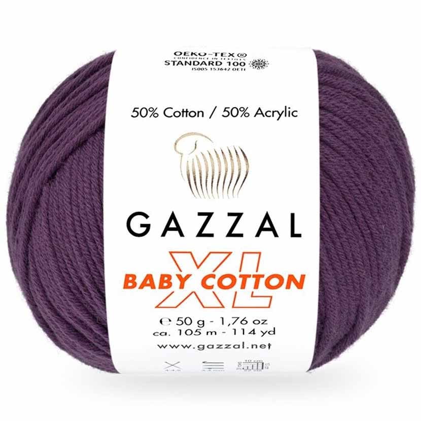 Włóczka Gazzal Baby Cotton XL - mieszanka bawełny z akrylem. Bardzo delikatna, miękka kompozycja idealna dla dzieci oraz osób wrażliwych. Średniej grubości włóczka sprawdzi się na różnego rodzaju wyroby dziewiarskie od swetrów, kamizelek, czapek, szalików po ciepłe kocyki dla dzieci oraz zabawki.