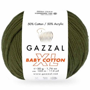Włóczka Gazzal Baby Cotton XL - mieszanka bawełny z akrylem. Bardzo delikatna, miękka kompozycja idealna dla dzieci oraz osób wrażliwych. Średniej grubości włóczka sprawdzi się na różnego rodzaju wyroby dziewiarskie od swetrów, kamizelek, czapek, szalików po ciepłe kocyki dla dzieci oraz zabawki.