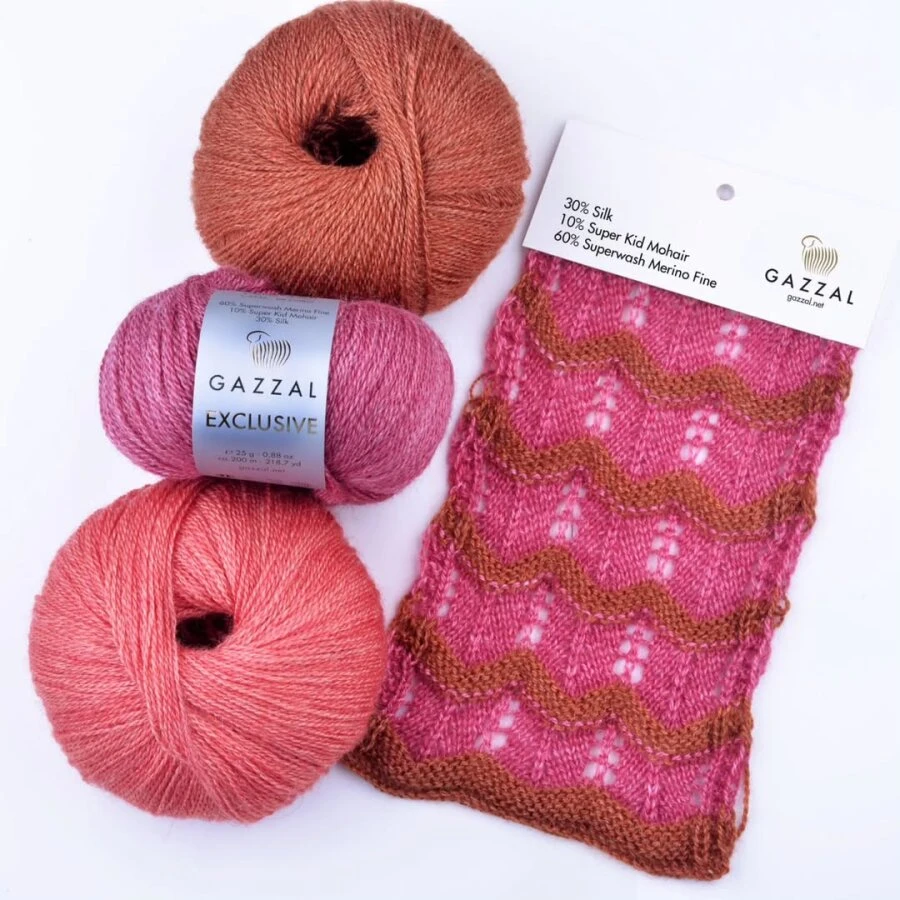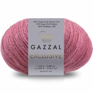 Włóczka Gazzal Exclusive - to luksusowa włóczka łącząca naturalny jedwab z delikatnym moherem oraz wysokiej jakości wełną merynosa Superwash. Połączenie to sprawia, że przędza jest miękka, delikatna, przyjemna w dotyku, nie podrażnia, jest ciepła oraz przewiewna. Polecana dla najdelikatniejszej skóry alergicznej, a także dla dzieci. Sprawdzi się w zwiewnych, lekkich i eleganckich wyrobach takich jak sweterki, szale, chusty czy narzutki.