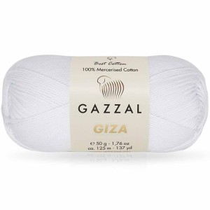 Włóczka Gazzal Giza - 100% bawełna marceryzowana, która idealnie nadaje się na letnie projekty. Dzieki procesowi merceryzacji włóczka posiada piękny, satynowy połysk i jest odporniejsza na mechacenie, nie rozdwaja się podczas dziergania. Wyglądem przypomina kordonek więc świetnie się nadaje na masywniejsze serwety, obrusy, bieżniki, zazdrostki. Można z niej wyszydełkować letnie bluzki, topy, narzutki, ażurowe poncza, chusty, torebki oraz sukienki. Sprawdzi się również do dziecięcych projektów takich jak czapki, sukienki czy kocyki.