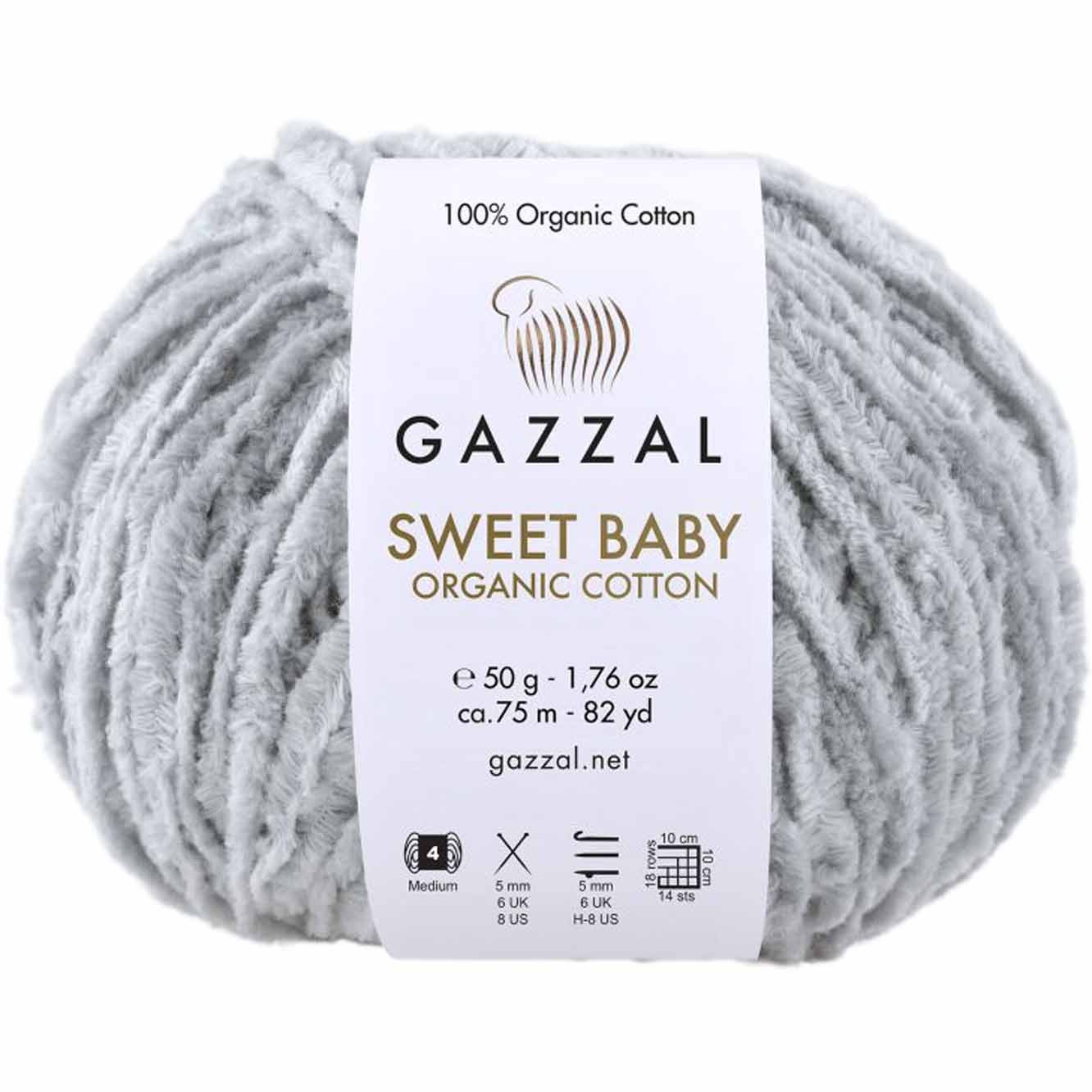 Włóczka Gazzal Sweet Baby - to najczystsza i najdelikatniejsza włóczka Gazzal. Wykonana w 100% z bawełny organicznej jest wyjątkowo delikatna zarówno dla natury, jak i dla Twojej skóry. Posiada certyfikat GOTS (Global Organic Textile Standard) oznacza to, że bawełna jest uprawiana metodami przyjaznymi dla środowiska, bez użycia pestycydów, nawozów chemicznych i szkodliwych substancji.