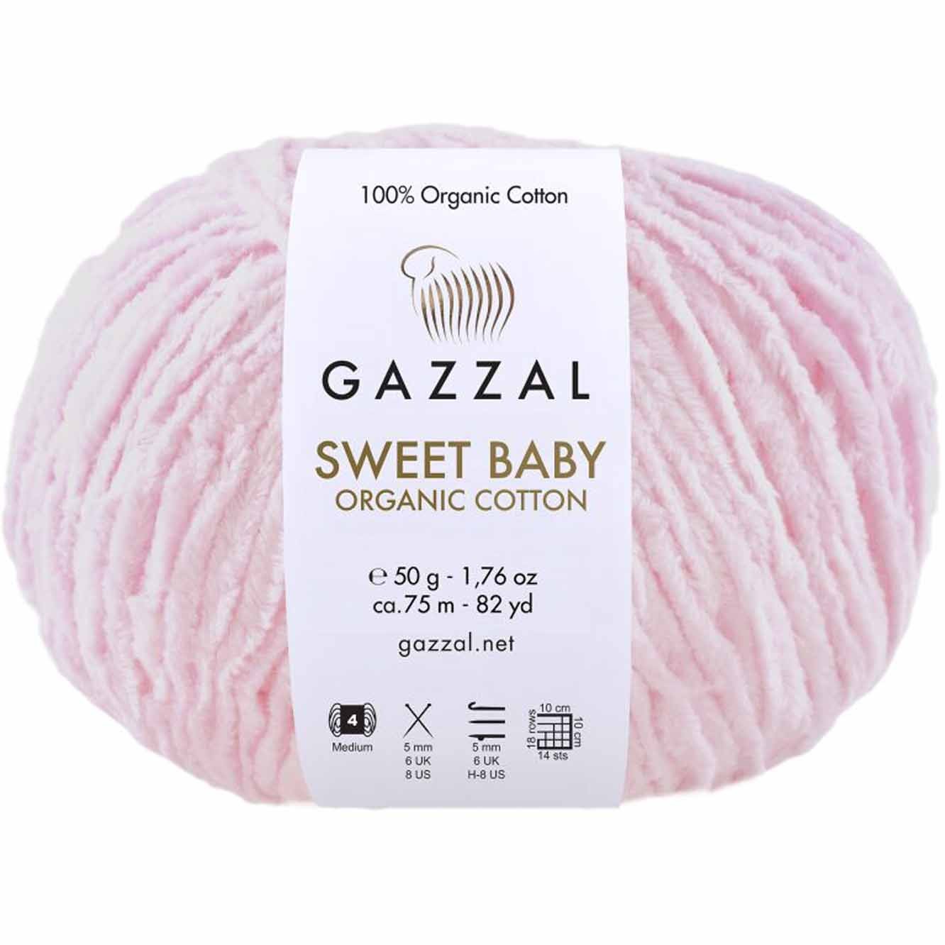 Włóczka Gazzal Sweet Baby - to najczystsza i najdelikatniejsza włóczka Gazzal. Wykonana w 100% z bawełny organicznej jest wyjątkowo delikatna zarówno dla natury, jak i dla Twojej skóry. Posiada certyfikat GOTS (Global Organic Textile Standard) oznacza to, że bawełna jest uprawiana metodami przyjaznymi dla środowiska, bez użycia pestycydów, nawozów chemicznych i szkodliwych substancji.
