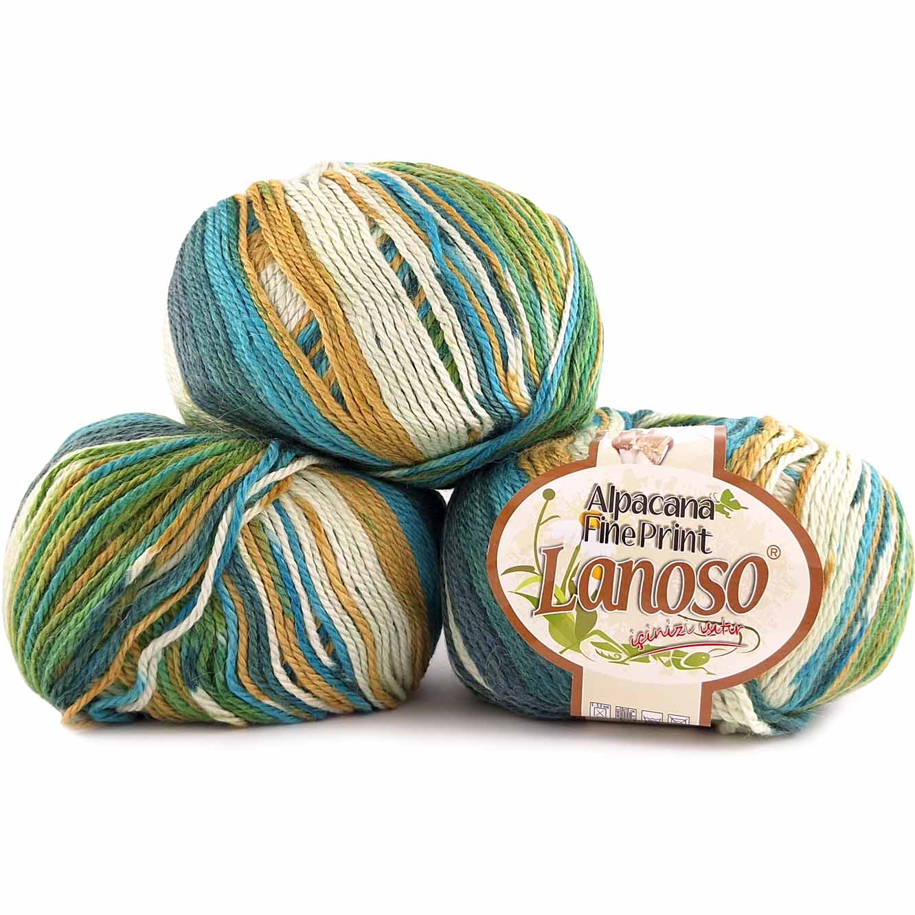 Włóczka Lanoso Alpacana Fine Print - delikatna i ciepła mieszanka wełny, alpaki i akrylu. Średniej grubości włóczka sprawdzi się na robótki takie jak swetry, szaliki, czapki czy skarpetki.