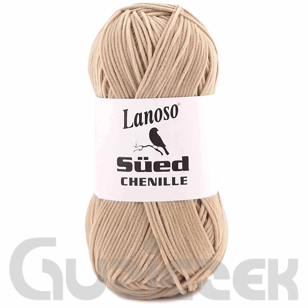 Włóczka Lanoso Sued Chenille - posiada cienką i sztywniejszą nitkę dzięki, której robótka trzyma fason i pożądaną formę. Puszek na nitce jest mocny i nie sypie się nawet przy pruciu. Sprawdzi się do wszelkiego wyrobu rękodzielnictwa czy maskotek.
