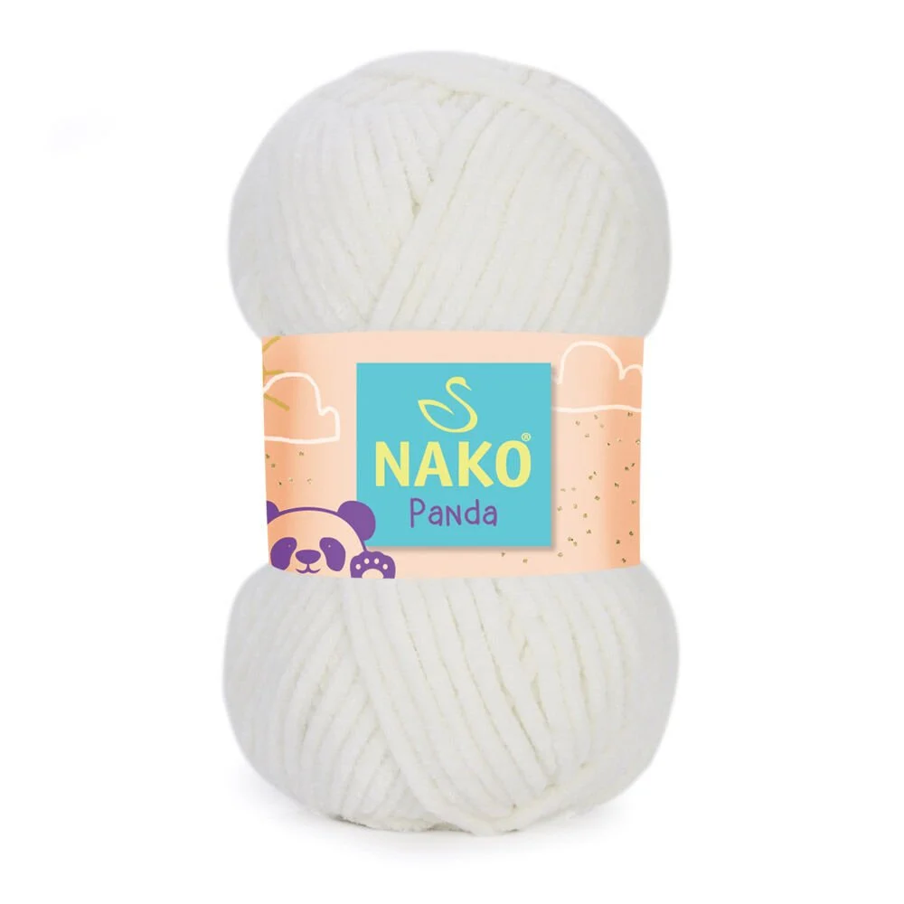Włóczka Nako Panda - puchata włóczka, bardzo miękka i delikatna w dotyku. Ta pluszowa włóczka idealnie nadaje się na wyroby dla dzieci kocyki, poduszki, czapki, szaliki, skarpetki, a w szczególności do wyrobu maskotek.