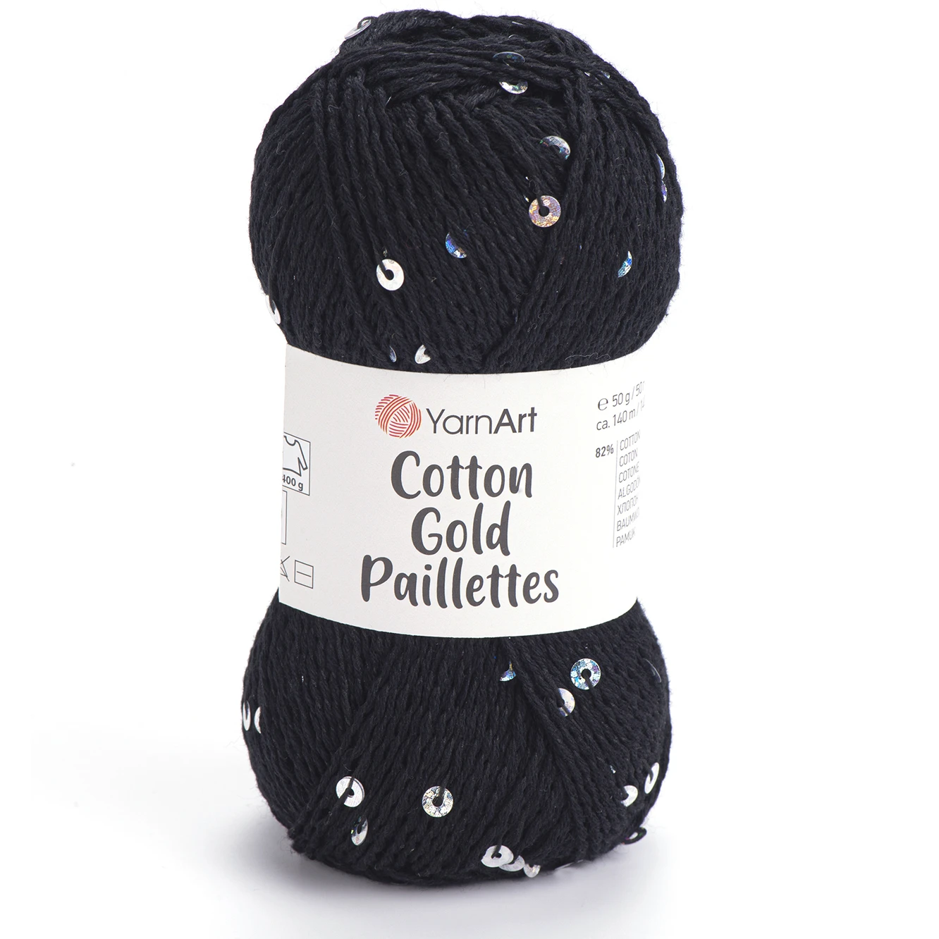 Włóczka YarnArt Cotton Gold Paillettes - naturalna bawełniana włóczka o luźnym splocie, w którą wpleciono błyskotliwe cekiny. Dobra na wiosenne i letnie projekty na bluzeczki, kamizelki, narzutki czy chusty.
