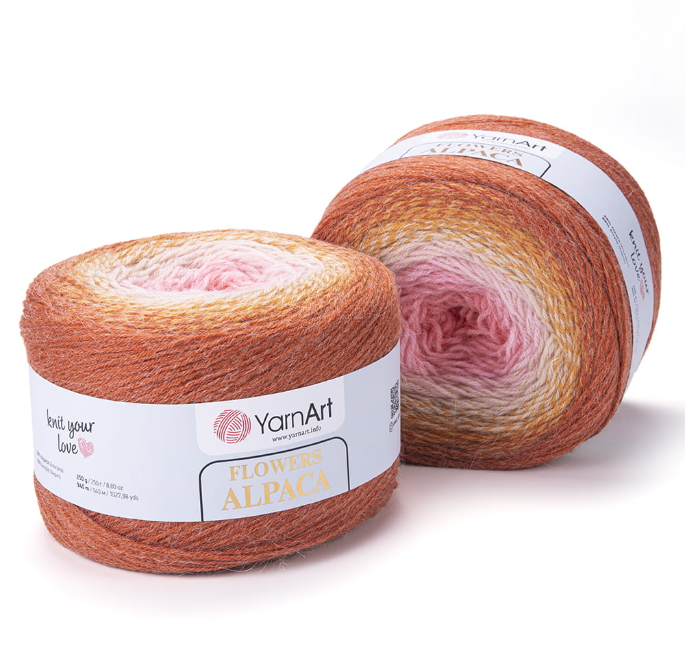 Włóczka YarnArt Flowers Alpaca - włóczka ombre składające się z czterech skręconych nitek, dzięki czemu kolory płynnie przechodzą jeden w drugi. Dodatek wełny oraz grubsza nitka sprawiają, że włóczka ta sprawdzi się przy wyrobie zimowych chust, kominów czy szalików.