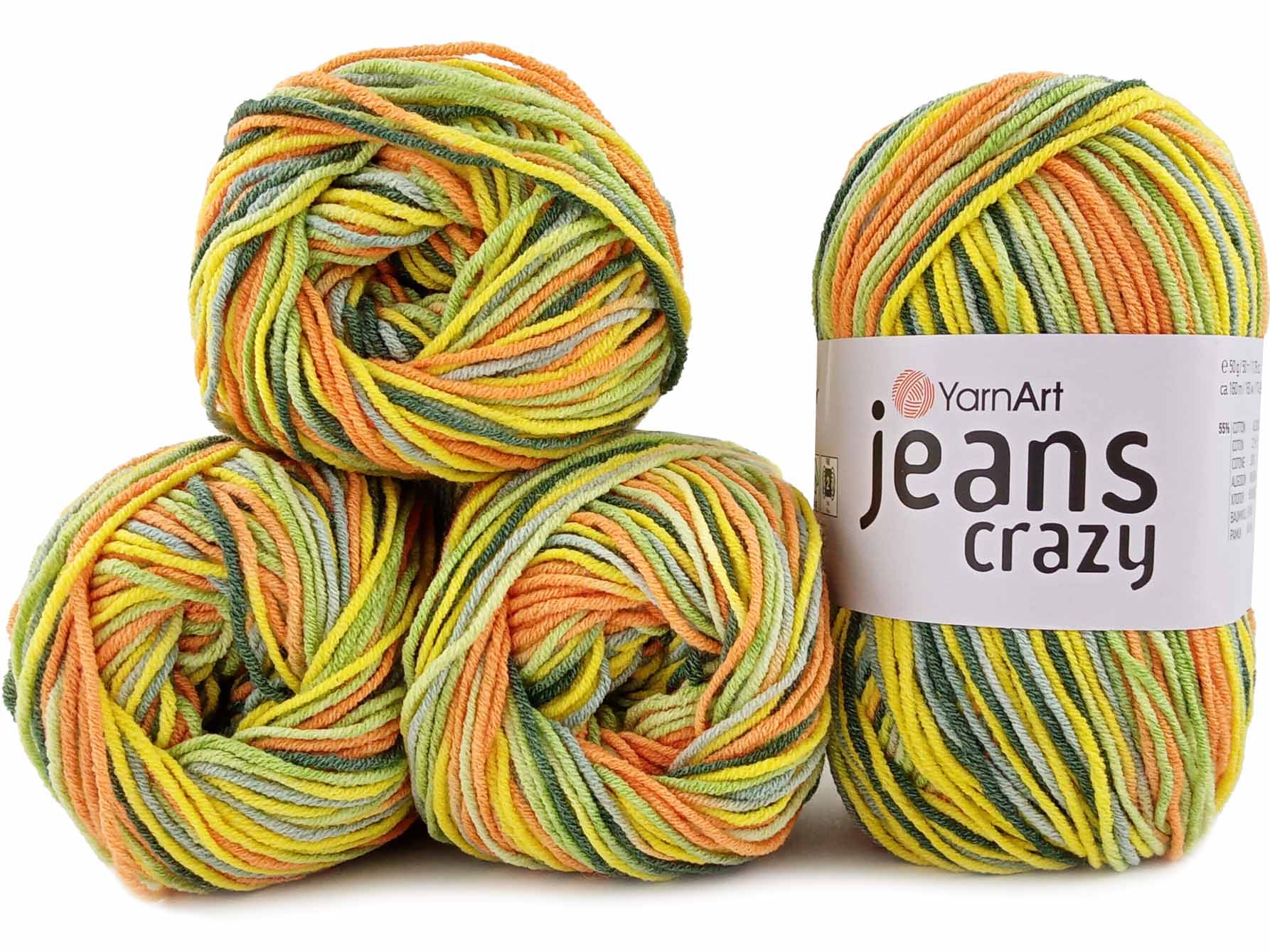 Włóczka YarnArt Jeans Crazy - melanżowa wersja znanej i lubianej włóczki YarnArt Jeans. Miękka i przyjemna w dotyku, nie rozciąga się. Jest bardzo dobrze skręcona, dzięki czemu jest wygodna przy przerabianiu. Idealnie nadaje się na wyroby dla dzieci na kocyki, poduszki, jesienno-wiosenne czapki, skarpetki oraz maskotki.