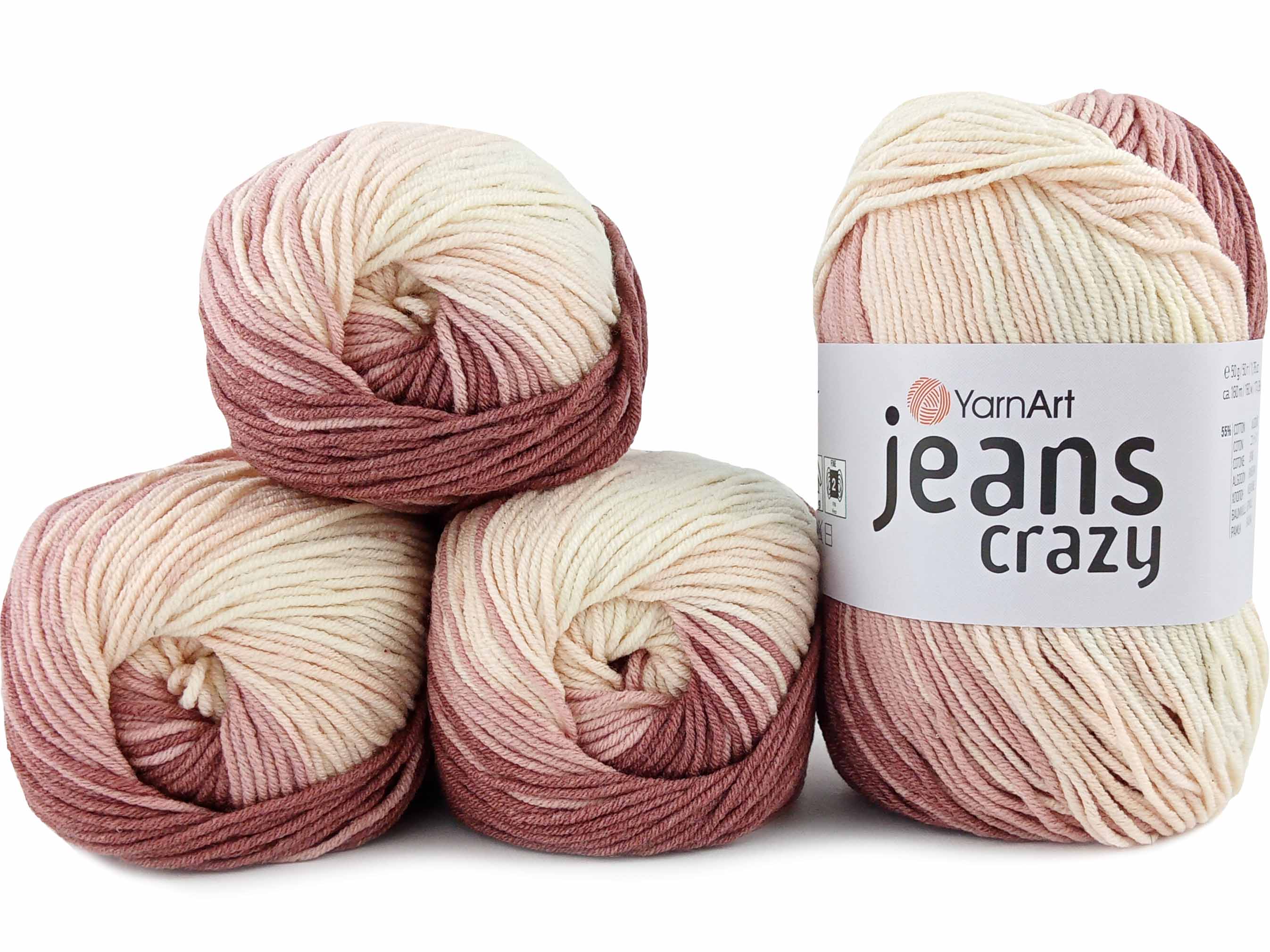 Włóczka YarnArt Jeans Crazy - melanżowa wersja znanej i lubianej włóczki YarnArt Jeans. Miękka i przyjemna w dotyku, nie rozciąga się. Jest bardzo dobrze skręcona, dzięki czemu jest wygodna przy przerabianiu. Idealnie nadaje się na wyroby dla dzieci na kocyki, poduszki, jesienno-wiosenne czapki, skarpetki oraz maskotki.