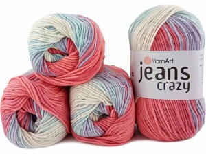 Włóczka YarnArt Jeans Crazy - melanżowa wersja znanej i lubianej włóczki YarnArt Jeans. Miękka i przyjemna w dotyku, nie rozciąga się. Jest bardzo dobrze skręcona, dzięki czemu jest wygodna przy przerabianiu. Idealnie nadaje się na wyroby dla dzieci na kocyki, poduszki, jesienno-wiosenne czapki, skarpetki oraz maskotki.