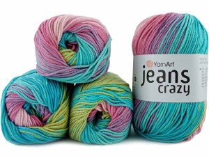 Włóczka YarnArt Jeans Crazy - melanżowa wersja znanej i lubianej włóczki YarnArt Jeans. Miękka i przyjemna w dotyku, nie rozciąga się. Jest bardzo dobrze skręcona, dzięki czemu jest wygodna przy przerabianiu. Idealnie nadaje się na wyroby dla dzieci na kocyki, poduszki, jesienno-wiosenne czapki, skarpetki oraz maskotki.