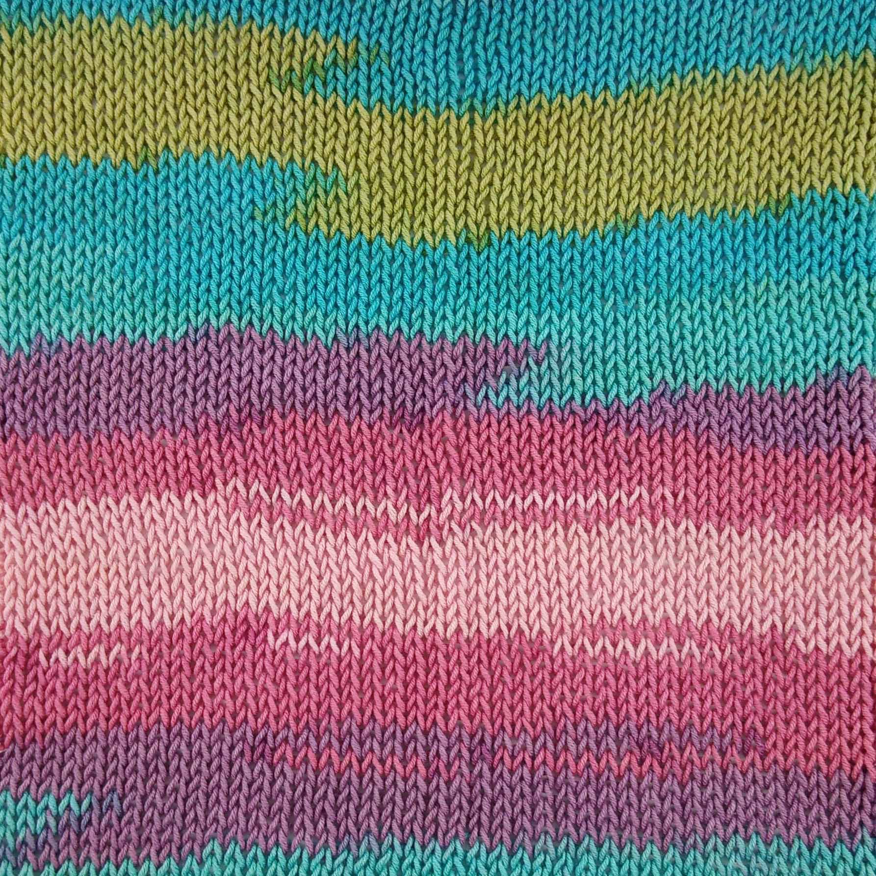 Próbka została wykonana w formie rękawa na młynku dziewiarskim Prym Maxi.