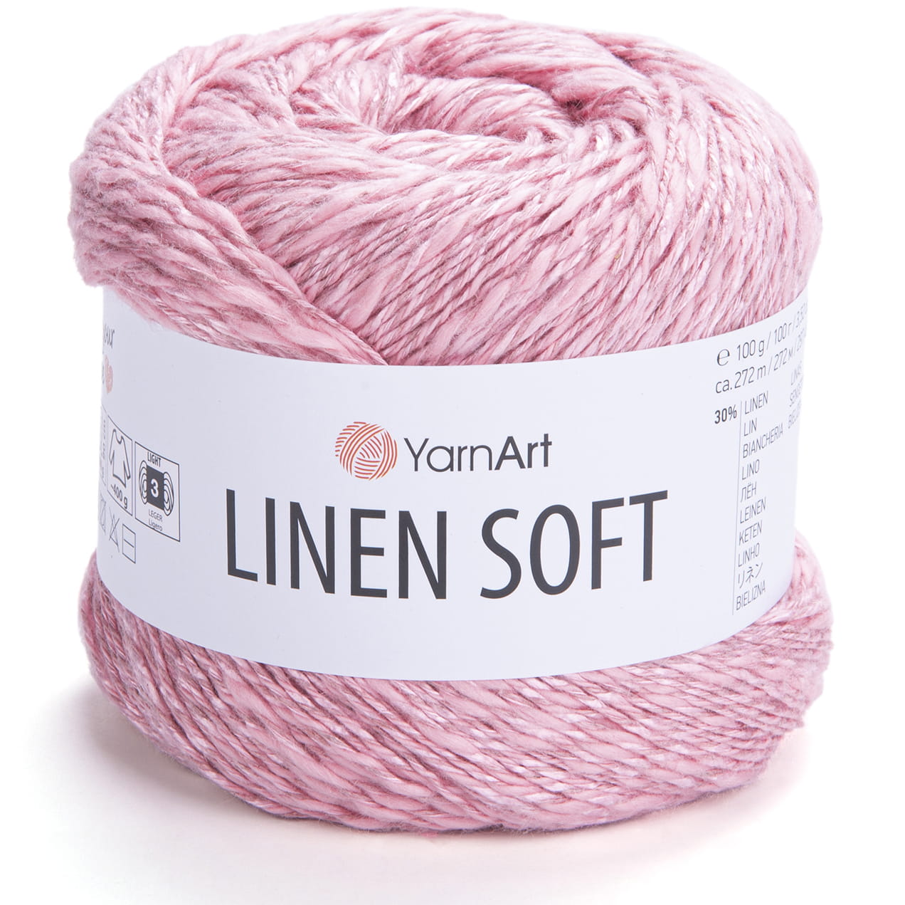 Włóczka YarnArt Linen Soft - to połączenie naturalnych włókien - lnu, wiskozy oraz bawełny dające przewiewne, chłodne odczucie. To połączenie idealnie nadaje się na wyroby letnie, takie jak bluzki, tuniki, pareo, sukienki, spódnice oraz spodenki. Nitka o splocie nieregularnym z lekkim połyskiem wiskozy, daje ciekawe i niepowtarzalne efekty.